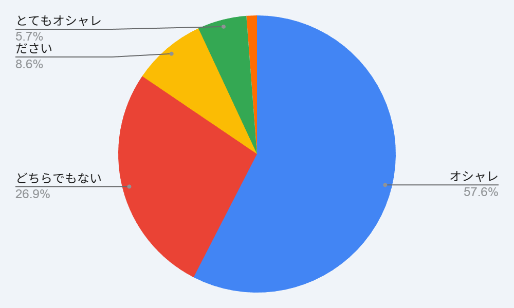 逆に言えば、89.4%の人はグラミチに対して「アリ(普通〜オシャレ)」という肯定的な印象を持っているということになります。